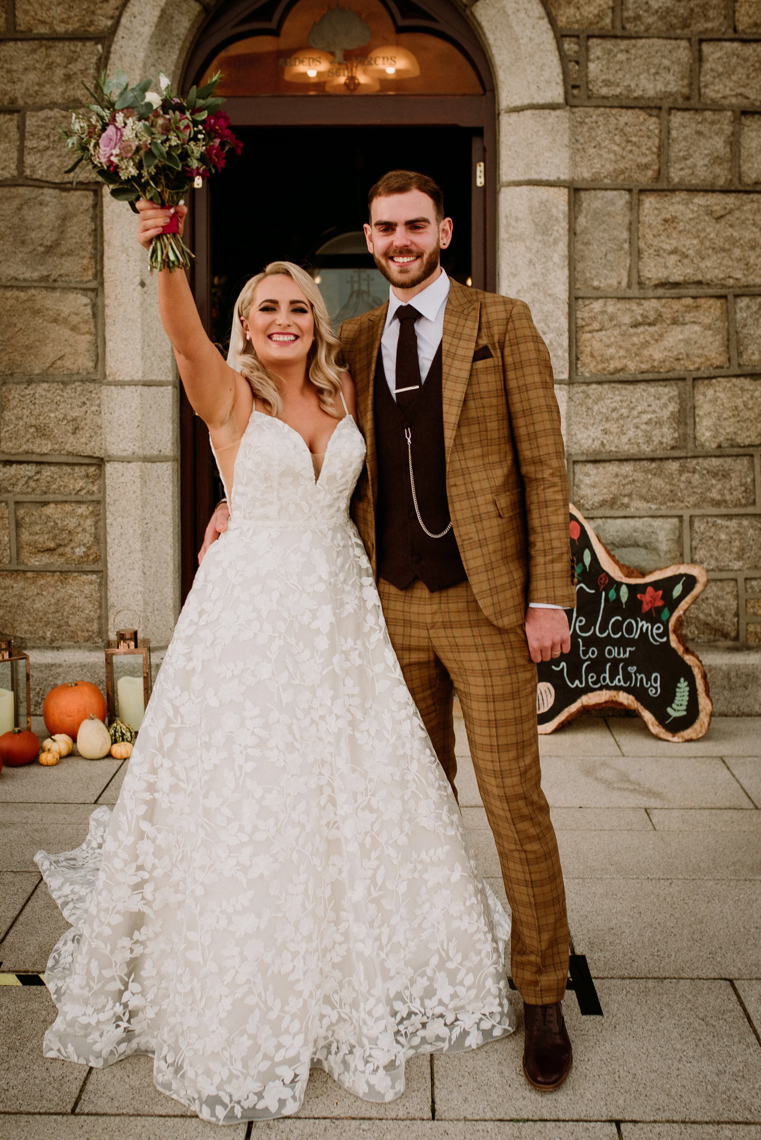 Their wedding of 180 guests at the stunning Lusty Beg Island became a micro wedding of 25 guests for a church ceremony, where all guests except the bride and groom wore masks followed by a catered meal delivered to a self catering house just for their bridal party and immediate family as hotels were closed and they weren’t allowed a reception.