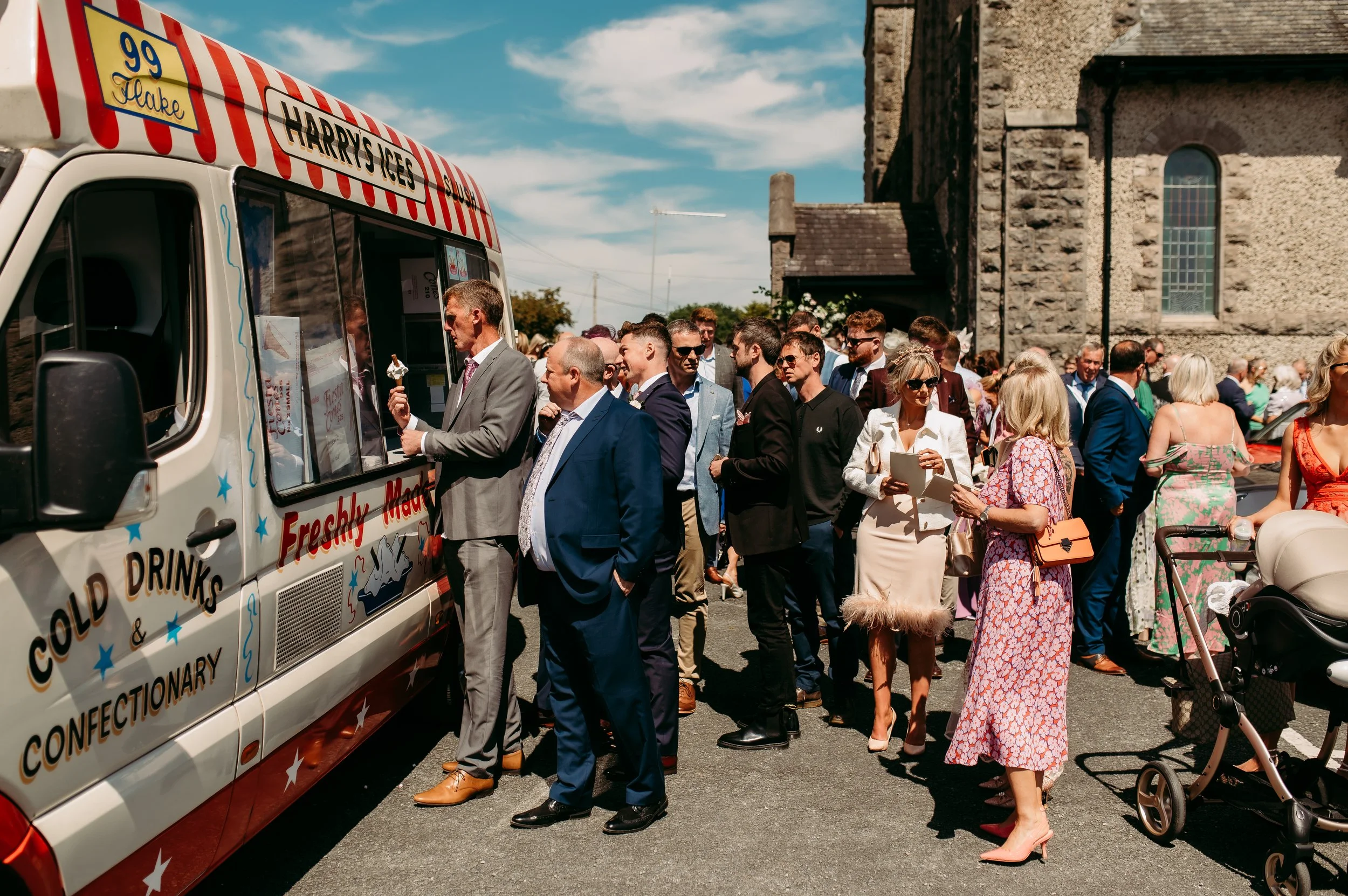 The couple exchanged vows in a beautiful church ceremony, surrounded by their nearest and dearest. After the ceremony, guests were treated to a delightful surprise; an ice cream truck waiting outside the church! With the sun shining brightly, everyone enjoyed cooling off with delicious frozen treats before making their way to The Old Rectory for the reception. It was one of those perfect summer days where time seemed to slow down, allowing everyone to truly soak in the joy of the occasion.